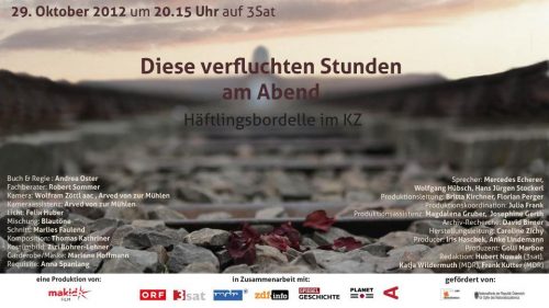 „ Mit dieser Dokumentation wird ein besonders perfides Detail aus dem Alltag in NS-Konzentrationslagern dargelegt. Die schreckliche Zeit des NS-Regimes ist schon in zahlreichen Filmen aufgearbeitet worden, erstmals berichtet diese Dokumentation aber ausführlich über die Häftlingsbordelle in den Lagern. Mit Interviews von Zeitzeugen und überlebenden wird in sensibler Weise das Schicksal und Leiden der Betroffenen erzählt. ORF 3sat ermöglicht mit dieser Dokumentation erstmals einen wichtigen Blick auf ein bisher vielfach ausgeblendetes Detail der Grausamkeit und Doppelbödigkeit des NS-Systems."