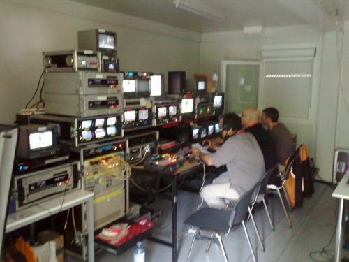Im Regiecontainer am Rathausplatz.